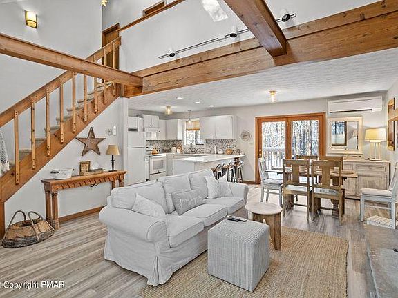 Beautifully maintained Lake Naomi home on a .45 acre lot which backs up to a private unbuildable, PA Forest Preserve. House also borders Greenbelt. The most recent upgrades include high efficiency ductless AC/Heat units and hot tub. This property has an 18 year successful STR history! Enjoy the open floor plan with stone wood-burning fireplace from well appointed kitchen. The extraordinary lot can be viewed from large new deck in backyard. House has large attic for storage. 95% of furniture included along with 2 kayaks and a rowboat. Lake Naomi membership available which offers access to the top notch resort amenities such as boating, swimming, golf, tennis, and access to resort style pools including one with an infinity edge overlooking the 277 acre lake. Lake Naomi Club is the only 5 star Platinum Club Community in the Northeast. 1 1/2 hours door to door from NYC.