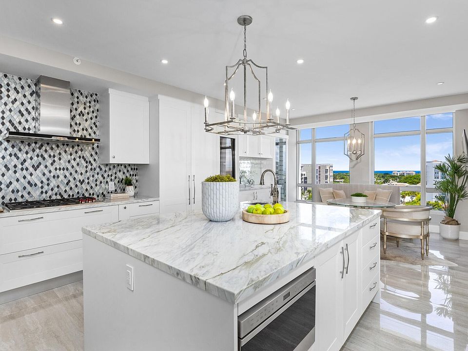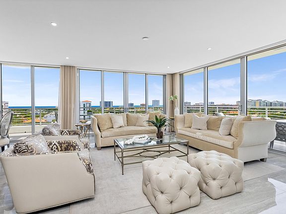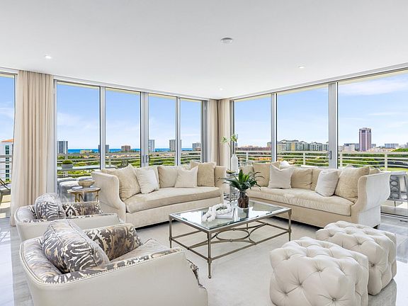 Rarely available, this exceptional Southeast corner penthouse offers private elevator entry and four luxurious bedroom suites, all bathed in natural light with breathtaking panoramic views of the golf course and the endless ocean beyond. Designed to impress, this exquisite residence features floor-to-ceiling windows, automated blinds, and elegant porcelain tile flooring. The expansive wraparound balcony is perfect for entertaining, complete with a built-in gas grill. The gourmet kitchen boasts an upscale Wolf & Sub-Zero appliance package, including a refrigerator, freezer, refrigerator drawers, wine storage, a five-burner gas stove, microwave, and double ovens. Refined designer touches abound, from custom Italian cabinetry and bespoke wall coverings to intricate mosaic tile work and tailored closets. With over 3,100 square feet of sophisticated interior space and an additional 500 square feet of private outdoor living, this penthouse is a sanctuary in the sky. Exclusive amenities include a rooftop pool, state-of-the-art fitness center, two parking spaces, valet service, and 24-hour security. This listing is a courtesy of Douglas Elliman x Rochelle LeCavalier Disclaimer: All information is deemed reliable but not guaranteed. All properties are subject to prior sale, change, or withdrawal. Neither listing broker(s) or information provider(s) shall be responsible for any typographical errors, misinformation, or misprints and shall be held totally harmless.