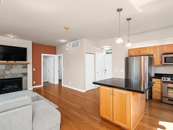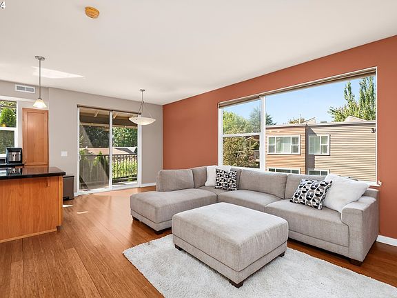 Welcome to this stunning, condo that offers a comfortable and contemporary living experience with its open floor plan, bamboo floors, and an abundance of natural light. Step inside and be greeted by the spacious living room, complete with a cozy fireplace, perfect for relaxing evenings. The large windows throughout flood the space with sunlight, creating a warm and inviting atmosphere. The kitchen features an ample amount of cabinets for storage, sleek S/S appliances, gas cooking, and a convenient island that provides both additional workspace and a breakfast bar for casual dining. The primary bedroom is a serene retreat and boasts a spacious walk-in closet. The oversized, single car garage located below the home offers plenty of additional storage space. Don't miss this special property situated in a fantastic location, just a short walk to an abundance of shops, restaurants and parks. This is a gem!