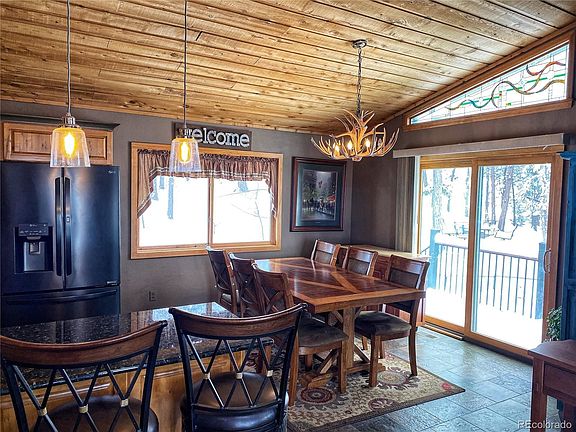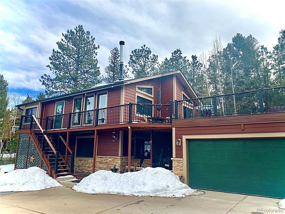 This updated mountain home is situated on a private 1.76 Acre lot with Southern exposure and mountain views. The main level boasts a spacious Master Suite with a tiled Master Bath and walk-in closet. The large family room has an energy efficient pellet stove to keep you warm and cozy. The upper level has an inviting open floor plan with oversized windows, skylights, vaulted wood ceilings, pellet stove and slate flooring with decorative inserts. Enjoy the updated kitchen with Stainless Steel appliances, granite counters, under mount sink and new flooring. Completing the upper level are the dining room, living room, 2 bedrooms and full bath. Plenty of extra storage to keep things organized. Entertain outside on the large low-maintenance composite deck with newer hot tub included. The newer roof, siding and energy efficient windows round out this wonderful home. Minutes from Hwy 285 for easy access to Bailey, Conifer and Denver. Don't miss out on this one!