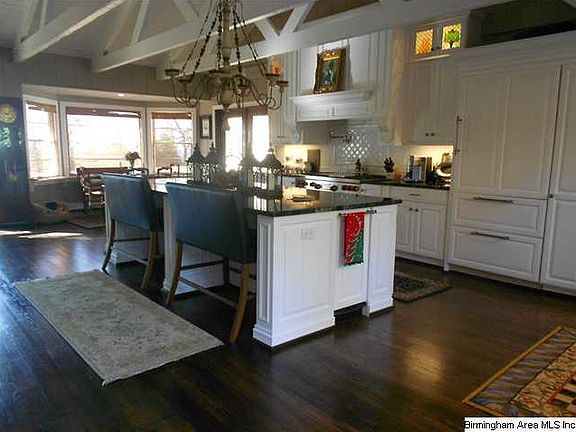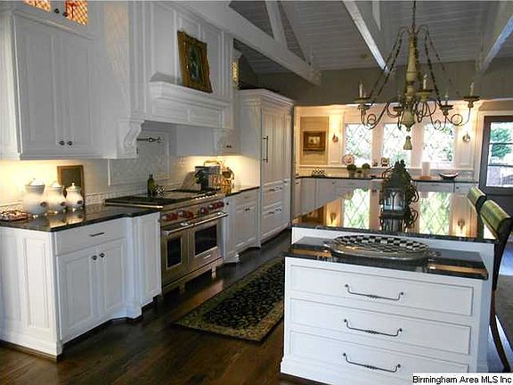 A true one of a kind! Country style cottage that sets itself apart from any other residence in Birmingham! The front living area is accented by gorgeous wood beam ceilings, and oversized fireplace that makes the room feel very inviting! The kitchen is AMAZING, and almost brand new; featuring custom cabinetry, high end appliances, marble countertops, and everything else a chef could imagine! The right hand side of this home was added on by the current owners, and boasts a SPECTACULAR den accented by tongue and groove ceilings, and wonderful fireplace. The master suite is fabulous, and has French Doors leading out to the pool/patio area. The master bath has separate vanities, sep tub and shower, and large walk-in closet. You'll fall in love with the sunroom that's located just off the master suite (also with its own fireplace). The pool area is fantastic, with an outdoor kitchen, covered patio area and more! There's a FULL GUEST HOUSE above the 5 car garage! Crow's Nest with a view!!