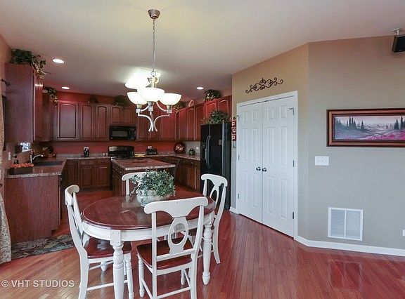 Phenomenal Value! Impressive 2 Story Entry with Diagonal Hardwood which continues into your Kitchen & Eating Area! Your Family Room has a Fireplace with Gas Starter & Built in Entertainment Center! You'll love cooking in your new Kitchen with lots of Counter Space, 42" Cherry Cabinets and Island Storage. Sliding Doors lead to your Beautiful Brick Paver Patio & the Play Set Stays! Your Family & Rec Room are wired for Surround Sound plus; you'll find Ceiling Fans in the Family Room & All Bedrooms! Your Large Master Bedroom looks out over the Pond. And, You'll Love your Master Bath with Soaker Tub, Separate Shower & Double Bowl Sink. The Laundry Area is complete with Wash Tub & Overhead Cabinets. And, the Basement has a Full Bath & is Plumbed for a Wet Bar! In addition, You'll find a Large Storage Room with Cement Floor Crawl! Your Fenced Yard Gate opens to the Park with Soccer Field, Basketball Court, Play Set Area & Covered Brick Paver Pavilion! Garage is 33' Deep! Call & See Today!