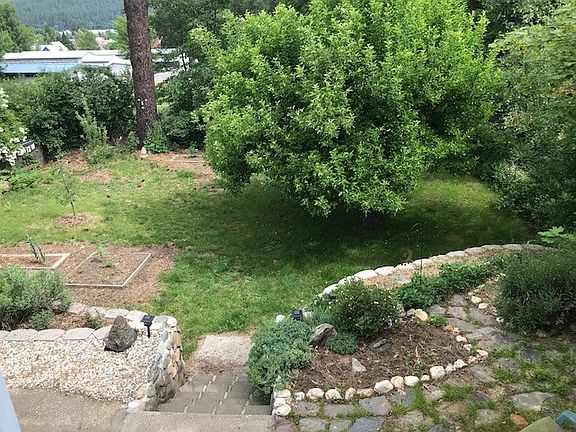 Large back yard with fruit trees and garden beds on quiet cul de sac over looking Quincy Elementary school. Deck and finished basement / workshop. Great Family neighborhood.
