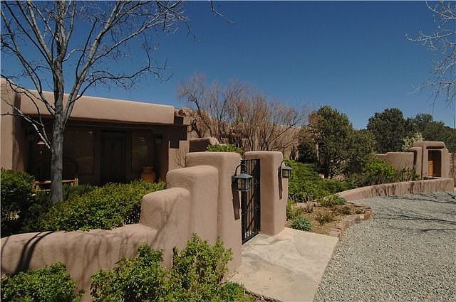 This Buzz Bainbridge renovation is exceptionally crafted of Adobe and offers a rustic elegance in classic New Mexico design. The rich walnut and pine hardwood floors, and the stained flagstone floors plus high, dark beamed wood ceilings all contribute to the aesthetic appeal of this rare property. Sited perfectly on 3.8 acres with with arguably the best Sangre and Badland views in all of Santa Fe. Amenities include: an upscale kitchen with Viking and Subzero appliances, 4 fireplaces, numerous skylights, exceptional outdoor living areas, hardwood view deck, stylishly updated bathrooms and numerous built-ins. New roof 09, new stucco 08, dog run and a 2 Car garage.