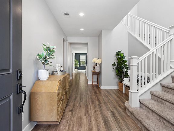 Welcome to this exquisite 4 bedroom, 3.5 bathroom home. It's located in the prestigious Horse Creek Ridge in Fallbrook. The heart of the home is the gourmet kitchen with quartz countertops, a 6-burner cooktop, and convection microwave, double oven, spacious walk-in pantry, butler’s pantry, cozy fireplace, paid solar, Jr. Suite with a full bathroom and walk-in closet, large laundry room, ceiling fans throughout, QuietCool whole-house fan, luxury vinyl plank flooring, 12"x24" tile flooring, upgraded carpeting, LED recessed lighting, covered patio, beautiful landscaped yard. Two car garage with electric car hookups, low HOA. See supplement