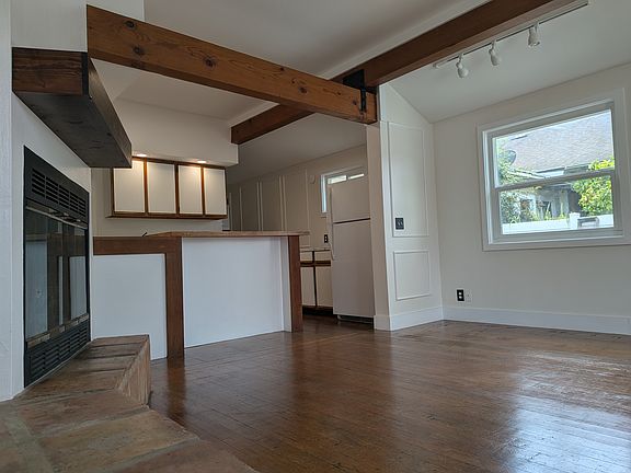 This property is an architectural delight, featuring a charming American Folk and Victorian Transitional style. The curb appeal is instant, with a classic white picket fence, drought-friendly succulent landscaping, and an inviting front stoop the perfect spot for your morning coffee. Inside, you'll find original hardwood floors and a beautiful leaded glass designed window in the front, preserving its historic character. The home has been recently updated with new countertops, fresh paint, and modern fixtures. A fireplace also creates a cozy, welcoming atmosphere.