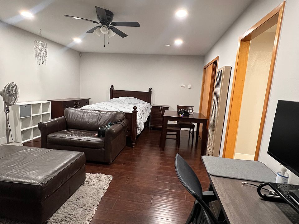 Nice clean studio fully furnished with bed, sofa, TV, dresser, and all appliances. Located in the back of the main house with it's own entrance and private fenced backyard.1 year lease, available Dec 1st, 2025. Tenant pays all utilities. Walking distance to downtown Tracy and right off of 11th street