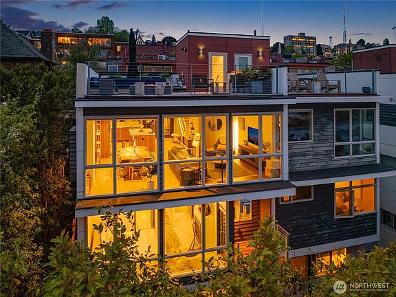 Experience the legendary “Frasier view” from this South Slope Queen Anne home—sweeping vistas of Puget Sound, downtown Seattle, Mt. Rainier, and the Space Needle take center stage. Floor-to-ceiling windows and a private rooftop deck let you watch the city unfold from sunrise to sunset. Elevated design shines through birch hardwoods, quartz counters, custom cabinetry, curated wallpapers, and Ironwood decking. Plus, the extensive primary suite helps set a relaxed tone. This 4-Star Built Green home includes private underground parking and negotiable furnishings. Steps from Queen Anne’s beloved parks, restaurants, and shops—this is a rare opportunity to own a sophisticated abode and Seattle’s most iconic view in one exceptional package.