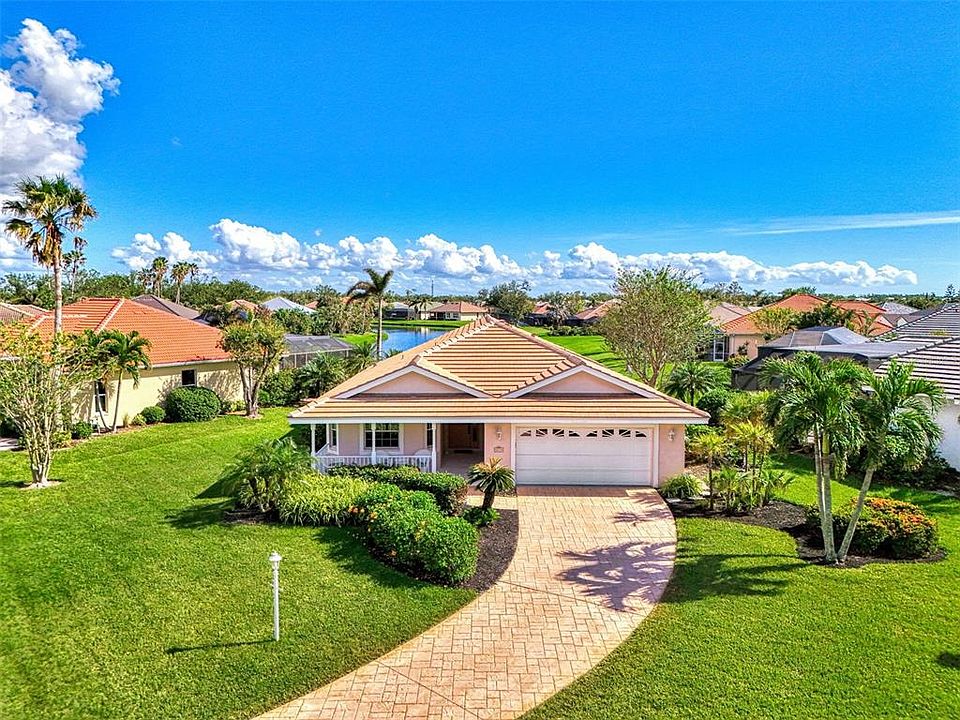 WHY RENT this Season when you can OWN and INVEST in your Florida Lifestyle! Discover lasting value and everyday enjoyment in this charming, thoughtfully designed 3-bedroom home in Bay Ridge, nestled within the desirable Riverwood community and located on one of the largest PREMIUM WATERFRONT LOTS! From the welcoming front porch to the expanded lanai, every space invites you to savor the beautiful Florida outdoors. Start your day with breakfast on the lanai overlooking serene pond views and wind down on the front porch capturing colorful sunsets in a tranquil setting. Inside, the bright open floor plan with high ceilings and abundant natural light creates a cheerful, relaxing atmosphere. The great room flows into a spacious kitchen with a dining nook perfectly positioned to enjoy pond views through a lovely bay window. With three bedrooms (one currently used as a den), two large bathrooms, updated vinyl flooring, and a 2022 tile roof, this home offers both comfort and quality. Additional updates include a newer stove and microwave (2021), refrigerator (2020), and dishwasher (2019), along with an extended 4ft 2-car garage and a decorative concrete driveway. Riverwood offers an exceptional resort-style lifestyle with access to the award-winning Riverwood Golf Course, activity center with lap and resort-style pools, fitness center, pickleball and tennis courts, dog parks, and more. For beach lovers, an exclusive private Riverwood Beach Club on Manasota Key is available (membership based on availability). Conveniently located near Gulf beaches, the Atlanta Braves spring training facility, Charlotte Harbor, and charming coastal towns like Punta Gorda, Englewood, and Boca Grande, this home delivers the perfect blend of Florida’s natural beauty and long-term value. Don’t just rent a vacation—OWN YOUR FLORIDA DREAM at a GREAT VALUE! Call today for a private showing and experience the lifestyle waiting for you in Riverwood.