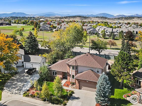 All-brick charmer on a cul-de-sac! This gorgeous home in the Fairway West neighborhood impresses with timeless curb appeal featuring a recently updated roof, and a professionally landscaped front yard that welcomes you as you arrive. The main floor was designed for entertaining, offering an open-concept layout with high ceilings, large windows that flood the space with natural light, and seamless flow between the living areas. The kitchen comes complete with stainless steel appliances, generous prep space, and abundant storage to keep everything organized and within reach. Choose a casual breakfast nook with a bay window overlooking the backyard, or enjoy the formal dining area with its own bay window facing the front. A spacious office with French doors adds flexibility to the space and can easily double as an additional bedroom. Upstairs, the home continues to impress with three generously-sized bedrooms, each featuring walk-in closets. The primary suite stands out with its vaulted ceilings, direct access to a private balcony with mountain views, and a luxurious 5-piece ensuite bathroom. Plus, a sunny, window-wrapped alcove is the perfect spot to relax with a good book or your morning coffee. The huge unfinished basement provides extensive space for expansion or additional storage, offering the potential to customize this area to suit your lifestyle needs. The fenced backyard is ready for gatherings with a raised deck and concrete patio. The large 3-car tandem garage offers ample space for vehicles, storage, or even a workshop. Located with convenient access to Loveland's numerous amenities and hotspots, this home is just minutes away from downtown, The Olde Course, and Lake Loveland, providing easy access to recreational activities, shopping, and dining. No HOA or Metro District!