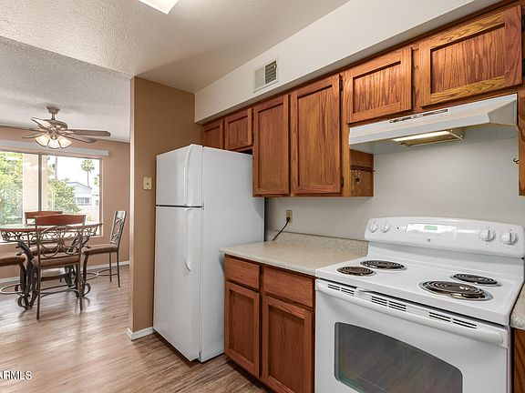 Look no further! Check out this adorable condominium in Desert Sun 55+Condominiums! Inside, you'll find wood-look floors complemented with trending paint, creating a warm & inviting atmosphere. The perfectly-sized living room is an ideal spot for a lounging area and relaxing. Cook your favorite meals in this kitchen, boasting ample wood cabinets and plenty of counter space. Carpeted bedroom provides a double-door closet & a private bathroom for your convenience. A.C only 2 years old. Hot Water heater only 3 years old. Unit comes Partially furnished.