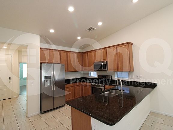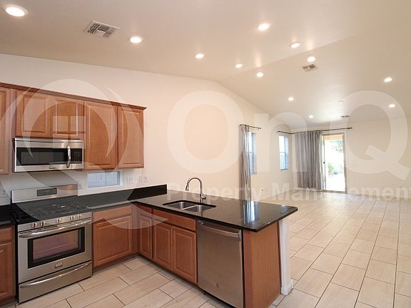 1,937 SQ FT! 4 bedroom, 3 bath home in Chandler's Layton Lakes! Desirable single story floor plan with soaring vaulted ceilings. Stunning eat-in kitchen with included appliances and expansive breakfast bar! Kitchen opens to spacious living/dining area with sliding door patio access. Great for indoor/outdoor entertaining! Neutral interior with tile flooring throughout. Split bedroom floor plan offers 4 generously sized bedrooms, each with optimal privacy! Primary suite with full bath, walk-in closet and private patio access. Blinds! Laundry room with included washer/dryer. **Installed Water Softener