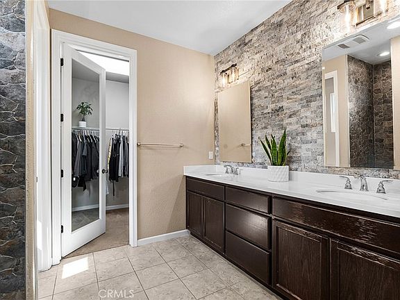 The crown jewel of this home is the remodeled primary suite bathroom—designed to feel like a private spa retreat. Featuring dual sinks with quartz counters, a striking stone-accented wall, and a stunning walk-in shower with multiple shower heads, including a luxurious rain shower, this space blends natural textures with modern comfort. Every detail was chosen to create a serene, relaxing escape right at home.