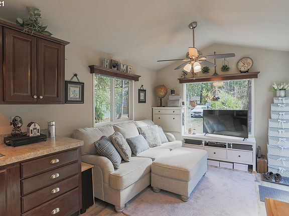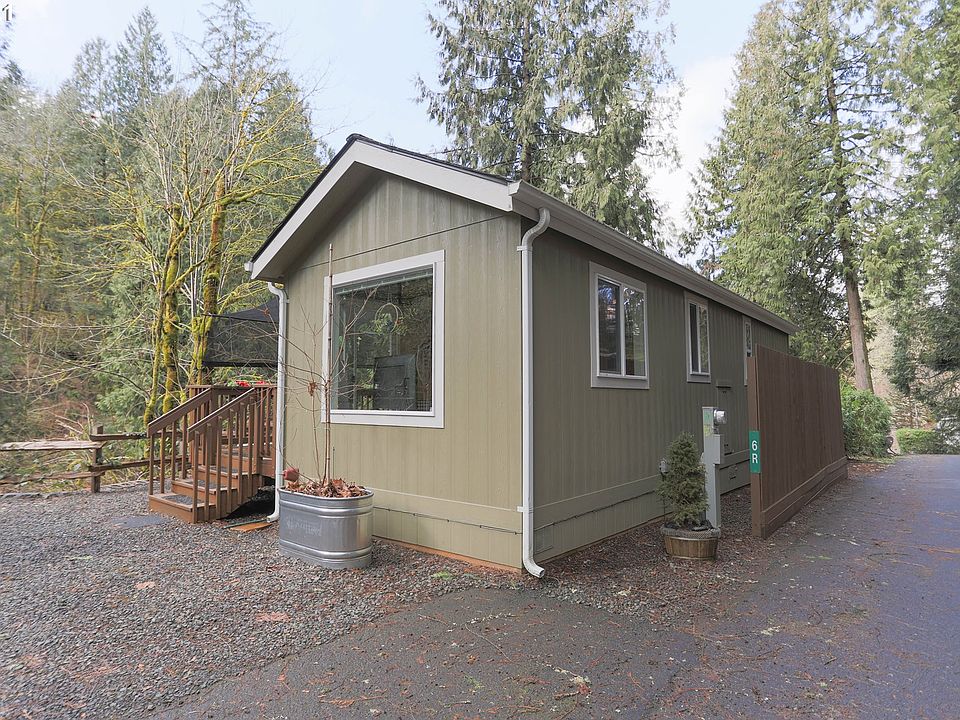 Come home to this one of a kind Tiny Manufactured Home located at Big Valley Woods Mobile home park in Boring, OR. This gem was built in 2016. Home Includes 1 bed, 1 bath, 399sqft of living space, open concept living, full kitchen, full bath & more. Yard is nicely landscaped with an 8x8 shed. Enjoy a morning coffee in this perfect setting on the large side porch surrounded by nature. Space rent is $595 a month. Includes water, sewer, garbage, gym, game room, community room, trails & management.