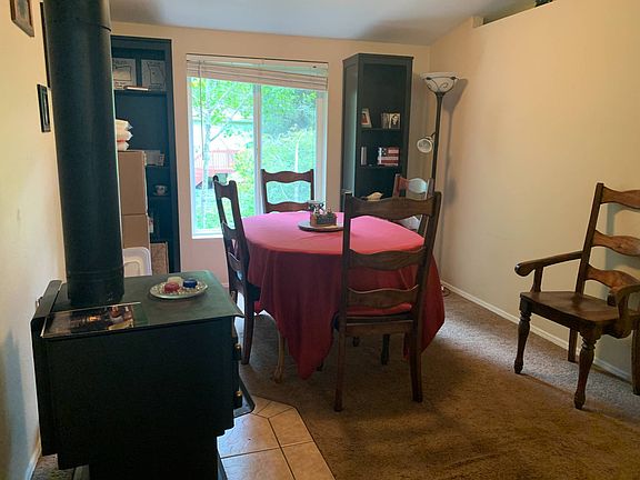 You will be amazed when you see this home! It's like a sanctuary IN THE WOODS! The spacious living room adjoins with a dining room you'd be so proud to serve in. A WOOD BURNING STOVE between these rooms only adds to the WOODSEY AMBIANCE! The kitchen has a LARGE PANTRY and flows into a FAMILY ROOM with views of trees and greenery. You'll feel like you're in a cabin in the woods! The windows have WHITE WOODEN BLINDS and the UPGRADED DOORS THROUGHOUT lend to a sense of sophistication. The CEILING FANS are beautiful! Muted colors of paint make a wonderful backdrop for your prized possessions. The primary bedroom has AMPLE ROOM AND STORAGE and has a very PRIVATE feel to it...again, the view is beautiful! Enjoy an en suite with a wonderful SOAKER TUB and personal touches. The SECOND and THIRD BEDROOMS are spacious and also have LOTS OF CLOSET SPACE. A SECOND BATH is conveniently located for family and guests. And just wait until you step onto the HUGE BACK DECK! Sit and enjoy the PEACEFUL ATMOSPHERE! And it's COVERED for year round enjoyment. The VIEW is just amazing with TALL EVERGREEN TREES AND SHRUBS! It's IRRESISTABLE! Entertain family and friends in STYLE! Watch out though, they may never leave! WONDERFUL GARDEN BOXES, COVERED and extra parking are great features. There are TWO SHEDS, both GREAT SIZED! Another smaller deck out front makes for GREAT CURB APPEAL with room for potted plants and more! Don't miss this opportunity!