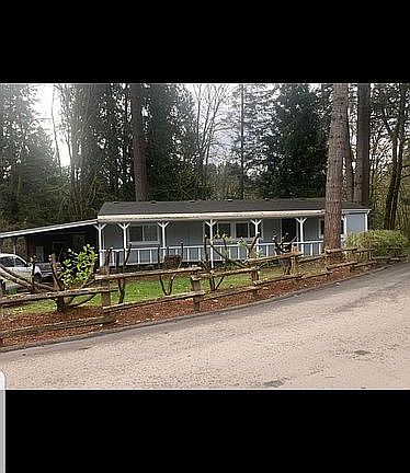 Get away from all the hustle and bustle of city life. You will find this turnkey home on a great street facing property surrounded by sounds of the NW. Spacious family room with plenty of windows to let that sunshine in. Kitchen is a cook's dream...spacious and great for family get togethers, new porcelain country sink, counter tops, and tons of storage, walk in pantry. Master bath offers a walk-in shower, dual sinks, granite countertop. Each guest room is equally as big which is great for a bigger family. Master bedroom allows for a king size bed and large walk-in closet. Home has been updated with laminate flooring, interior paint, dual vinyl windows, toilets, vanity's and so much more. Exterior has new siding , paint, large covered front deck where you will enjoy those beautiful summer nights with friends and family. Carport Parking for 2 cars, shed is 8X10. What a beautiful home to go to after a long day at work and all the hustle and bustle of the city. Peace and quiet and it is literally like camping every day. Park offers amenities, RV parking, playground, ponds for viewing, running creek for viewing, clubhouse with table games, basketball.