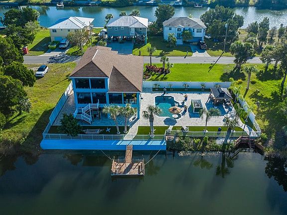 Welcome to the most gorgeous entertaining home in Hernando Beach.2007 3 Story home with 3 bedrooms,3 baths and 3 car Garage on two lots with 140 feet of waterfront. This home has had a total renovation with upscale luxury and elevator with phone. Beautiful luxurious Granite countertops and back splash, Custom kitchen cabinetry slow close, upscale appliances, marble flooring, light fixtures, plantation shutters, custom closets, salt water and heated pool, outdoor kitchen with pizza oven, double grills, microwave,gas grill, wine refrigerator, refrigerator in the garage just around the corner, gazebo and so much more. Two balconies with glass railing for a panoramic view. Master Suite is breathtaking with luxury wood flooring, balcony with glass railing, panoramic view of the Gulf of America and the bathroom is spa like with dual vanities, spa tile and shower. 2nd floor has a grand great room open concept to kitchen, 2 bedrooms, laundry room, bathroom. Great room and kitchen has a view across the back with balcony. Stairway glass leading to the master bedroom. Wine room. Huge pool area with a Gazebo and outdoor kitchen with everything you could think of to entertain. Pavers for driveway with extra parking. Pavers in pool area. Seawall in excellent condition with a floating dock. 1st floor has plenty of room for 3+ cars along with a pool bath. Security system throughout and safe room. This home is move in ready. Furniture is optional.