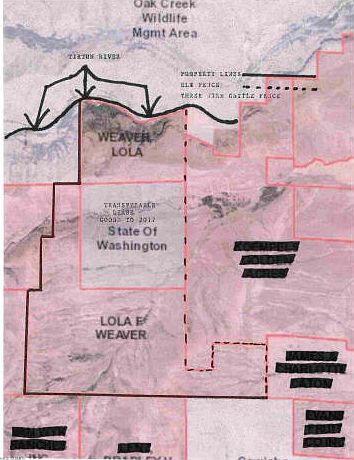 5 parcels over 1700 contiguous acres of open range in French Canyon. Bordered on two sides by the Elk fence with a third border being the Tieton irrigation canal.The remaining boundaries are 3 wire cattle fence with many gates. There are 4 springs historically providing over 9 months of fresh water annually. Amazing Deer, Elk,and upland bird hunting. Property contains surface water rights timber rights and mineral rights An Additional 640 acres available on state land lease good to 2017