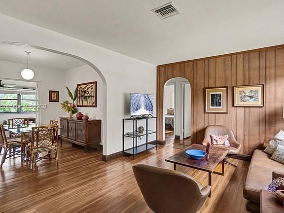 Welcome to paradise! Immaculate and charming Coral Gate furnished beauty on a large & private tropical landscaped lot. Lots of light throughout and cross ventilation for cooler days. Hardwood floors in living areas and bedrooms, freshly painted plaster walls. Formal living room & formal dining room flow into a sunny Florida room with terracotta cracked tile floors. Kitchen is well equipped and has an adjacent large attached storage/utility room with washer and dryer. A covered, screened room adds protected outdoor living & entertaining space overlooking the garden. LL prefers maximum 3 tenants. Closed, low traffic community is just a few blocks and an easy walking distance to downtown Coral Gables, restaurants, entertainment, shopping, golf courses and more!