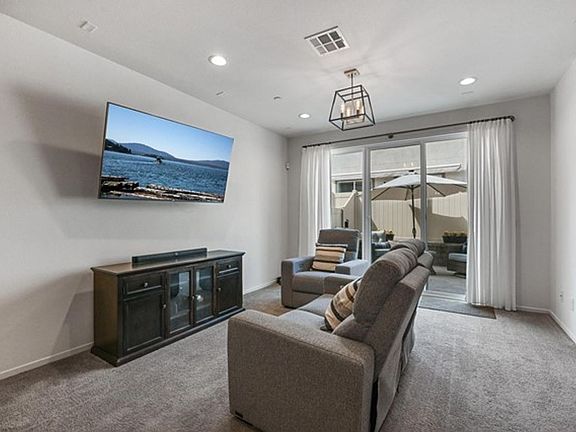 No expense spared on this gorgeous 3 bedroom, 2.5 bath home in Carlsbad's coveted Blue Sage community! The showpiece kitchen is loaded with GE Cafe appliances, quartz countertops, a farmhouse sink, and a six-burner gas stove with griddle. Pendant lighting shines over the breakfast bar, while the built-in microwave and included refrigerator make life easy. The living room opens right out to your private yard for that perfect indoor-outdoor flow.