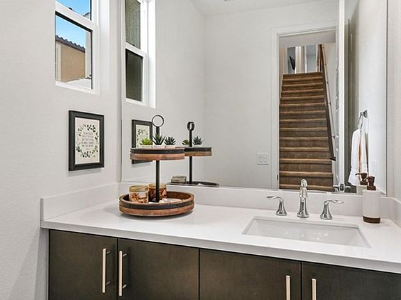 Upstairs you'll find all three bedrooms, including a dreamy primary suite with barn door entry, dual vanities, and a walk-in shower. The attached two-car garage comes ready with a Tesla Powerwall, EV charger, and tankless water heaterplus the home's solar system to keep utility bills low.