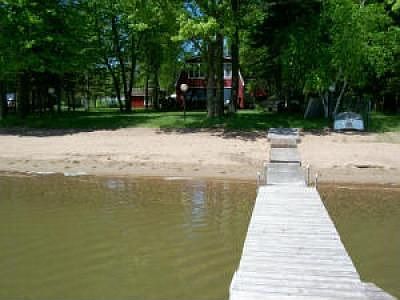 3 bedroom, 2 bath open plan home on 100' of level lot on the best sand beach anywhere! New siding and back deck in 2012. Nice trees, deep lot, quite private and what a beach! 2 car detached garage and also a 16' x 12' bunk house / shed. Sellers related to listing agent.