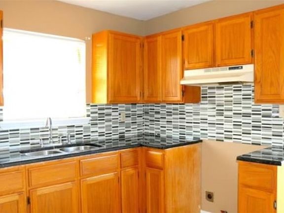 Stylish backsplashBrick homeGranite countertopsModern kitchen
