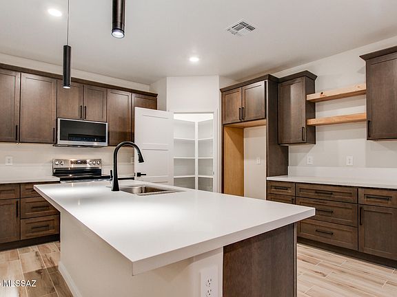 Discover this beautifully crafted 3 bedroom, 2 bathroom home with 1,664 sq. ft. of living space, designed with comfort and style in mind. The open-concept kitchen features a spacious island, ideal for entertaining. The split bedroom floor plan provides privacy and functionality. Enjoy sweeping views of the Tucson Mountains right from your home, creating a serene backdrop for daily living. Perfectly situated near shopping, dining, and local conveniences, this property blends modern design with the beauty of the surrounding desert landscape. Move-in ready and located in one of Tucson's most sought-after communities, this home is a must-see!