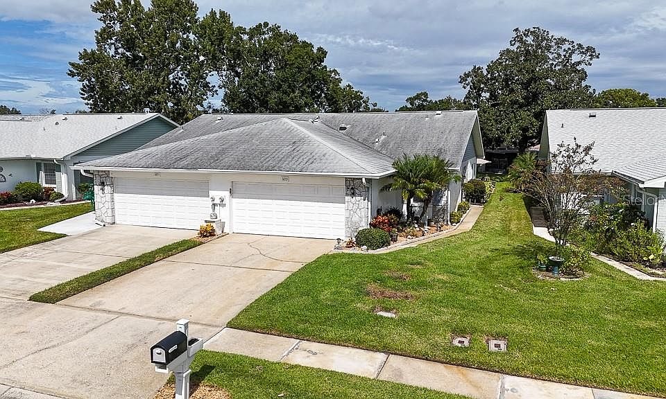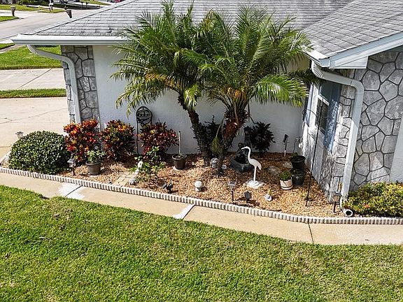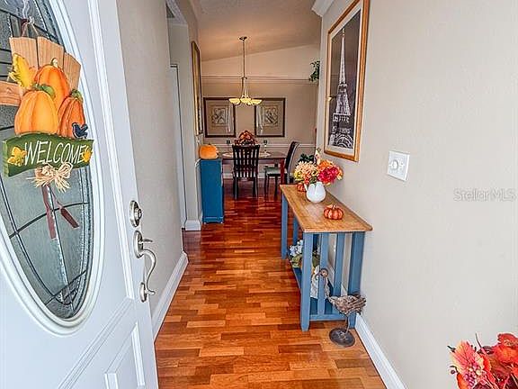 2 Bedroom, 2 Bath, 2 Car Garage End-Unit Villa in 55+ Highland Lakes Community! Welcome to this charming and beautifully updated villa offering exceptional curb appeal, modern updates, and a thoughtful blend of comfort and style. This bright, open home features vaulted ceilings, skylights, and a lockable storm door that brings in natural light while adding security. Updates include the electrical panel, roof and solar tube skylights (2014), water heater, water softener, windows and doors, lanai roof 2019, garage door opener, washer, dryer, and more! The stunning updated kitchen is a showstopper with solid wood cabinetry featuring 42” uppers, elegant glass-front accents (with optional wood inserts), a built-in wine rack, Silestone countertops, stainless steel appliances, undermount sink with high-mount faucet, can lighting, a skytube skylight, and a pass-through window to the dining area—perfect for entertaining! The spacious living and dining area offers rich hardwood cherry floors, crown molding with designer lighting, plant shelves, and custom architectural details that add warmth and character. The primary bedroom is generously sized, featuring hardwood floors, a walk-in closet, and an updated ensuite bath with a solid wood vanity topped with granite, modern lighting, framed mirror, newer toilet, and a glass-enclosed shower with elegant tile and decorative accents. The guest bedroom offers ample space with dual closets, one currently used as a convenient home office area, while the guest bath includes a solid wood vanity with granite counter, designer mirror, modern lighting, and crown molding. Enjoy year-round living in the glass-enclosed Florida room, expanding your space and opening to a rear pavered patio ideal for outdoor cooking, dining, or relaxing in privacy. Additional features include an indoor laundry closet with cabinetry, a renovated garage with pull-down attic access, and abundant storage throughout. Located in the desirable Highland Lakes 55+ community, this home welcomes one pet and offers low-maintenance living with fees covering lawn care, sprinklers, and irrigation water. Basic cable and internet (with two boxes) are available for just $16! Highland Lakes includes the following: Unlimited free golf on our three 9-hole executive golf courses named red, white, and blue. Outdoor clubhouse activities include tennis, pickleball, Bocce, shuffleboard courts, olympic size geothermal heated pool, and spa. The clubhouse has a library, kitchen, gathering room, cards and games, billiards, arts and crafts including woodworking, ceramics, painting, stained glass working, and more. Social activities include almost 100 clubs or groups, activities committee, casual parties, large dinner/dances, shows, and Saturday breakfasts. The rustic lakeside Lodge has a large multi-purpose room with beautiful hardwood floors, stone fireplace, a service kitchen, a panoramic view of Lake Tarpon, geothermal-heated pool and pool deck, a nearby certified butterfly garden, patio, picnic tables and grills as well as a horseshoe pitching pit. RV and boat parking in the RV/Boat Lot is included in the fees. Lake Tarpon is accessible via the boat ramp and there are two pontoon boats available for resident use/activities. This is a great Palm Harbor location served by top schools and is conveniently located near Tampa, St. Petersburg, Tampa International Airport, sporting events, beaches, medical centers, theaters, shopping, dining, and more!