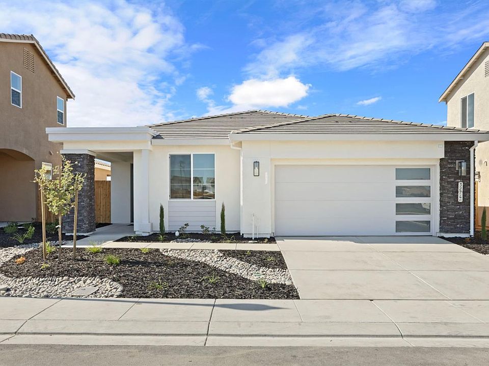 Stylish, new construction, single-story home located at The Trails by Raymus Homes - one of Manteca's most desirable neighborhoods! Enjoy a low tax rate and energy-efficient features, keeping your monthly investment low. The expansive open-concept layout connects the kitchen, dining, and great room. A private home office with dual barn doors adds flexibility, while the spacious covered patio extends your living outdoors. Designer touches include luxury vinyl plank flooring, quartz countertops, painted cabinets, and stylish tile in the bathrooms. Smart and useful features like a drop zone, whole home water softener pre-plumb, and trash bin pull-out make daily living more enjoyable. With quick access to Highways 120, 99 and I-5, commuting to Stockton, Tracy, or the Bay Area is a breeze. Backed by a 10-year structural warranty and the Raymus reputation, make this home yours today!