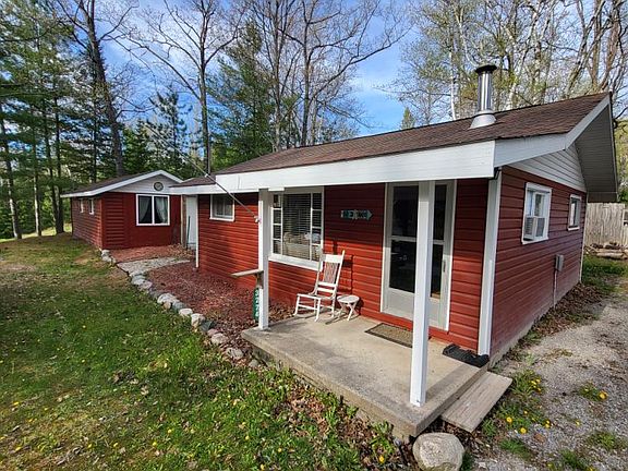 If you are looking for a place to relax... THIS COMPLETELY ready to use up-north feeling set of cabins is the PERFECT getaway ANY time of the year! This small community sits on 224 acre, All-sports McCollum Lake and this corner lot is just a short walk to its access. A VERY well maintained complex of Two FULLY-FURNISHED buildings and their connected 320 sqft deck makes it perfectly suited for entertaining and having Guests. The MAIN very comfortable cabin has two bedrooms, a 3/4 bathroom and a wood-burning stove in it's open design living/dining rooms and kitchen. Just a few steps out the kitchen door is the BEAUTIFUL natural wood paneled Lodge with it's open plan, wood floors and 1/2 bathroom. With a firepit right outside by the deck and its quality outdoor furniture, a lake to fish or paddle and potential dock rental... this truly could be your place to enjoy your relaxing Northern Michigan trips!