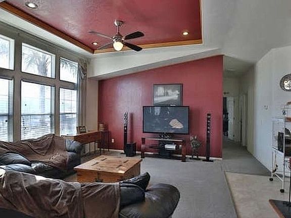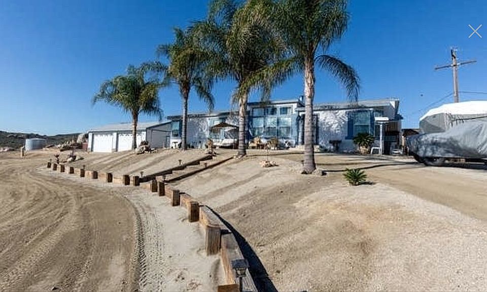Spacious 3 bedroom, 2 bath home on 2.09 acres with private well and septic. High ceilings throughout, tower dormer for extra windows and light in living room, fireplace, large kitchen with island, pantry, lots of cupboards, Culligan reverse osmosis system for the drinking water, roomy master bedroom with corner window, master bath has large tub and separate shower, formal dining room and separate breakfast nook in kitchen, large laundry room with deep sink, pet door installed in laundry room leads to fenced outside dog run (runs the length of the house), new carpet in dining room, living room and hallway, fans in living room and all bedrooms, walk in closet in master bedroom with added adjoining door to master bath, detached four car 24 x 40 garage with two 16 x 9 ft roll up doors, high ceilings and lots of outlets, wired for 220, rv parking with electric box hookup and septic, brand new water heater and mature palm trees. Refrigerator, stove, dishwasher and microwave included. Bring your animals and toys, you can ride right off your property into the many area trails! Area is quiet and peaceful with friendly neighbors. Beautiful views of Big Bear, Idyllwild, and Mt Palomar. Only minutes to Hemet, Menifee, Perris and Nuevo. No owner carry!