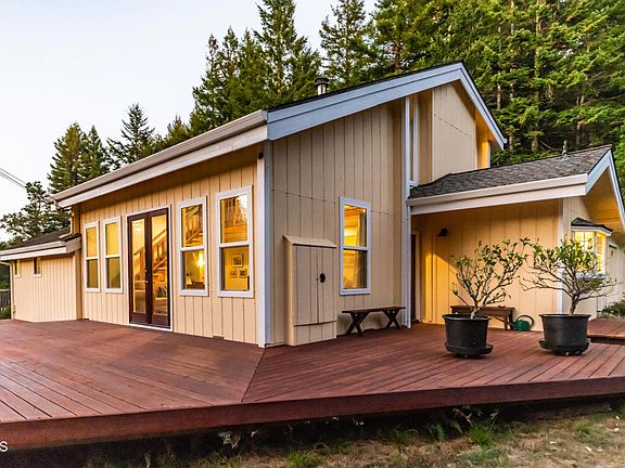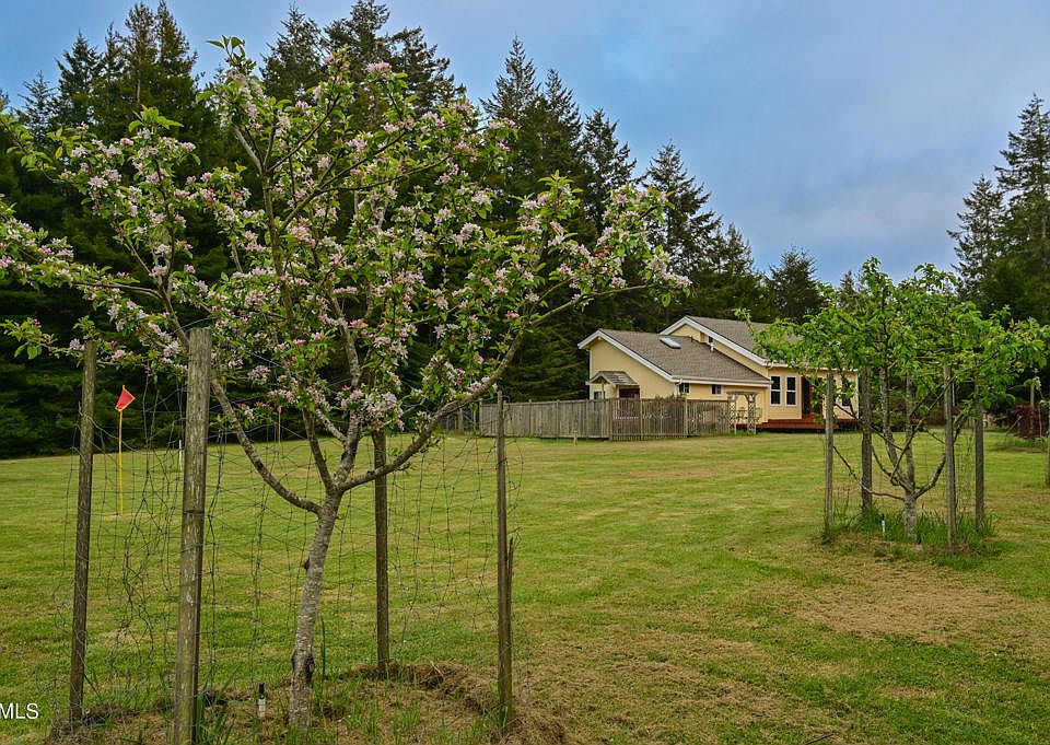 This special property offers what many coastal buyers dream of but rarely find: a charming residence with open grassy acreage beyond the typical fog belt, yet somehow only minutes from the ocean! At just under four acres, the beautiful level parcel impresses with its graceful entry drive through an orchard of fruit trees to the shining 3-bedroom/3-bath home beyond. Boasting a whimsical interior design, this home enjoys a fully equipped kitchen with stainless appliances and a gas range and electric wall oven, a bonus room ready for your needs, a three-car garage, propane forced-air heat, a strong-producing well, a Generac generator, and a large front deck inviting indoor/outdoor living. This dreamy turn-key property must be seen, and truly evokes the term ''Home Sweet Home''!
