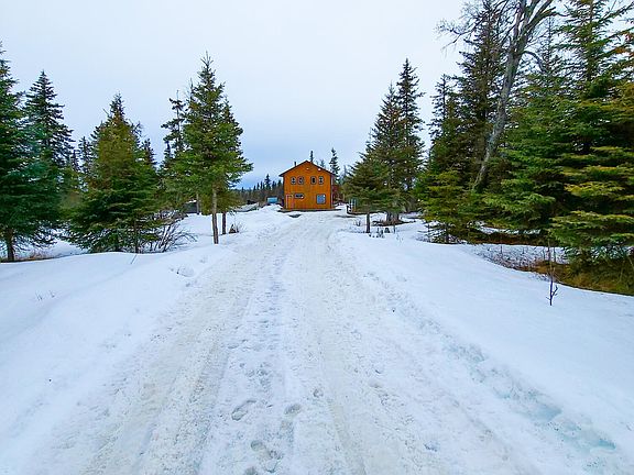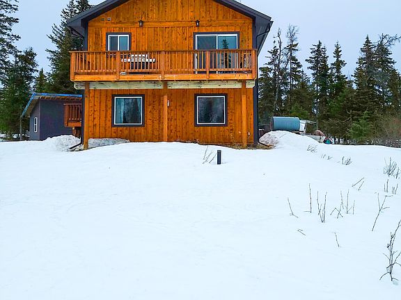 Located at the end of a peaceful, borough maintained road, this property is the perfect place to start living your Alaskan dream! Get lost in nature with this cabin style 3 br, 2 bth home with a circle driveway. Several outbuildings provide plenty of storage. Pond and creek attract an abundance of wildlife that can be observed from the deck, along with stunning views of Cook Inlet and volcanoes!