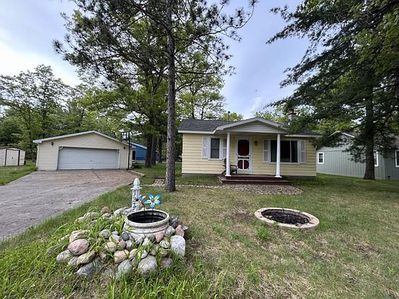 This 2 bedroom cutie is loaded with curb appeal and with a few updates would make a great starter/retirement home, vacation rental or seasonal retreat. Open floor plan with kitchen and living room combined. Living room has a wood stove with natural stone surround and wood mantel. Both bedrooms have large deep closets. The current owner used the back porch as a bunk house but could easily be converted back to a porch or laundry room if needed. There is a large 24x24 detached garage (with open covered storage on the rear) with its own electric service panel, RV hook up, plumbing including a small hot water tank and utility tub. Two parcels are included with the sale of this property for a total of 200 feet of road frontage... giving you plenty of room for outdoor fun! There is a propane wall furnace in the living room. There are two access points that are for the exclusive use of the lot owners in the Van Etten Lake Park Plat Map for Van Etten Lake within walking distance of the home.