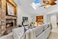 - Cathedral Ceiling(s), Ceiling Fan(s), Eating Space In Kitchen, Kitchen/Family Room Combo, Living Room/Dining Room Combo, Open Floorplan, Primary Bedroom Main Floor, Solid Wood Cabinets, Stone Counters, Thermostat, Walk-In Closet(s)