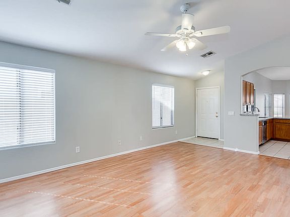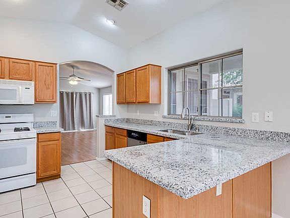 Spacious home in Gilbert. Quiet interior lot. 3 bedrooms 2 baths. 1325 SF. This floor plan offers a large living area and kitchen with a breakfast nook. Wood laminate floors in the family room and hallways. Tile floors in the kitchen, dining and baths. Sliding doors lead to covered patio and beautiful backyard with grass and trees. The M Bedroom has a walk-in closet. Ceiling fans in family room & bedrooms. New AC. Refrigerator, Washer & Dryer included. Park, play ground and school nearby.