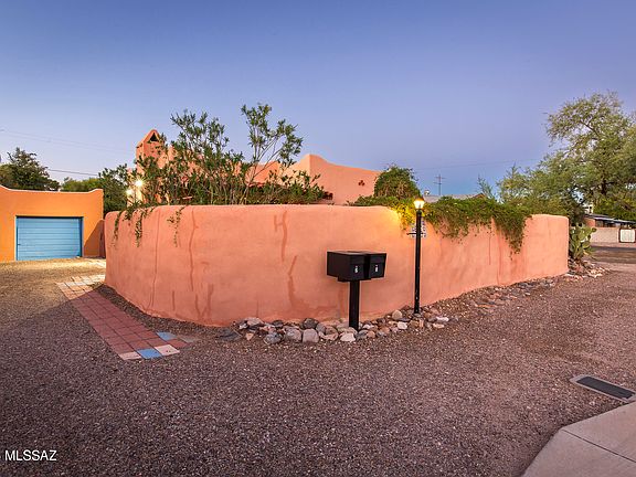 Discover the possibilities with this centrally located Santa Fe-style property featuring a main house, detached guesthouse, and separate garage, plus additional off-street parking with carport via rear alley. The front walled-in garden creates a serene, private retreat, while the main residence showcases classic Tucson character with hardwood floors, a charming fireplace (non-working), updated bath and new dual pane windows. An added back room expands the living space with views of the lush, shaded yard.The detached guesthouse offers its own outdoor area and gardening potential, perfect for rental income, multigenerational living, or a private studio. Electricity and gas are metered separately. With both homes currently tenant-occupied, this is a turnkey investment with immediate income or an ideal setup for an owner-occupant looking to offset a mortgage
