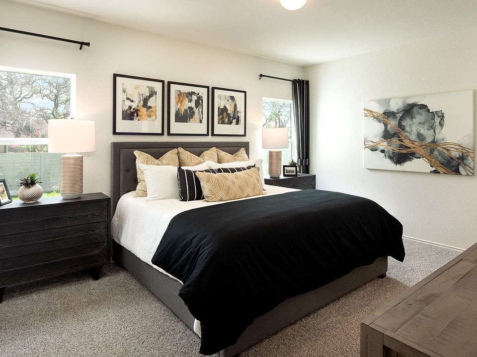 The Mason - This single-level home features a spacious open concept design among the living and dining spaces, offering access to a covered patio ideal for outdoor meals with friends or curling up with a book on a sunny afternoon. The owner’s suite is privately located at the back of the home, while three additional bedrooms share a hallway off the family room. Prices and features may vary and are subject to change. Photos are for illustrative purposes only. Estimated Completion December 2025