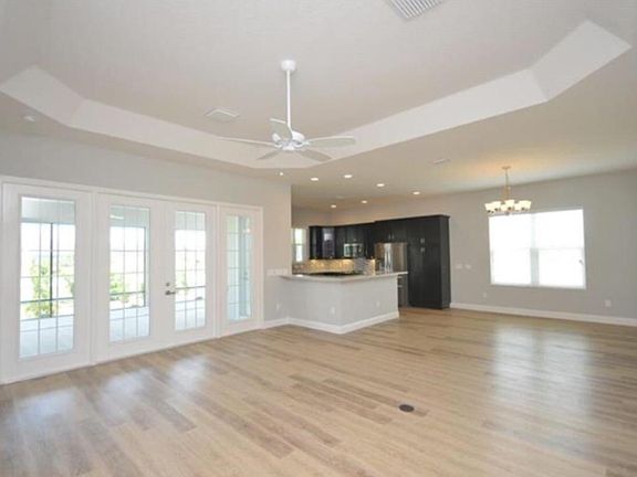 There are stairs leading to a second floor bonus room that is a great flexible space. The garage is an oversized 2 car with an extended golf cart garage and has an epoxy coating. All wall corners are rounded throughout the home. You won't be disappointed. Call and we will gladly give you a tour.