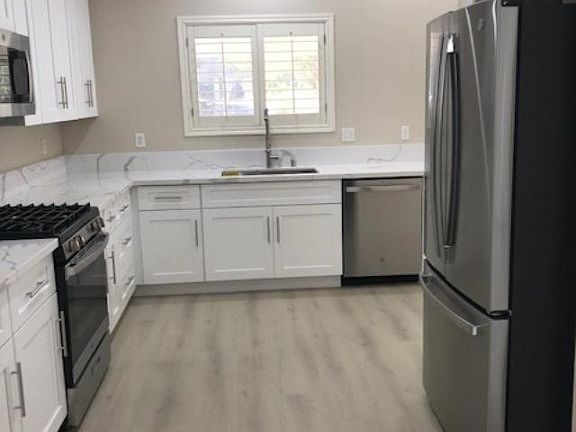 New quartz countertopsNew stainless-steel appliancesDramatic open floor planNew two-tone interior paintNew shaker cabinets