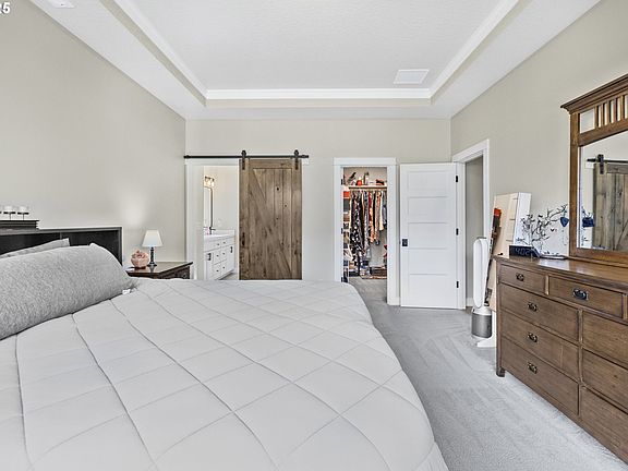 Experience modern luxury and custom quality in this 2023 Bruce Wiechert-built home in desirable Coburg! Thoughtful upgrades include vaulted ceilings with wood beams, 8-foot doors, engineered hardwood floors, and a gas fireplace. The kitchen features quartz countertops, a coffee bar with custom shelves, an island, stainless steel appliances, and custom cabinetry.The main-level primary suite features a spacious walk-in closet, double vanity, and a beautifully tiled walk-in shower. Outside, enjoy a covered patio, fully fenced yard, professional landscaping with sprinklers, and gated RV parking. A rare opportunity to own a nearly new home without the wait. Assessed County Taxes $5,164.85.