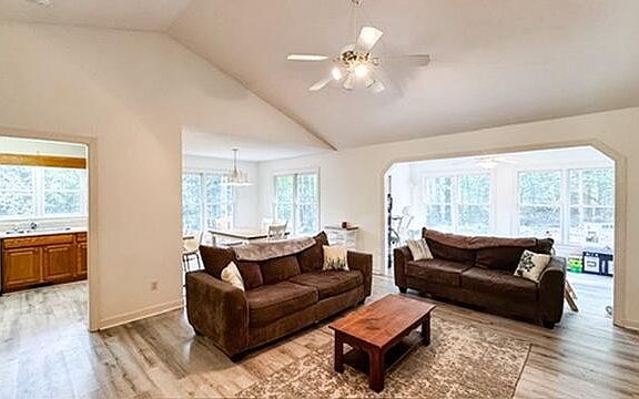 Welcome home to this beautifully maintained three-bedroom, two-bath ranch nestled on a total of .41 acres in the desirable, guarded community of Carolina Trace in Sanford. Designed with an open-concept layout, this home creates a seamless flow between the living, dining, and kitchen spaces—perfect for both everyday living and entertaining. Step outside to a spacious deck where you can enjoy views of your private, partially cleared backyard. A two-car garage provides plenty of parking and storage, while the fully encapsulated crawl space adds comfort and efficiency year-round. All of this in one of Sanford's most sought-after communities, offering peace, privacy, and exclusive amenities.