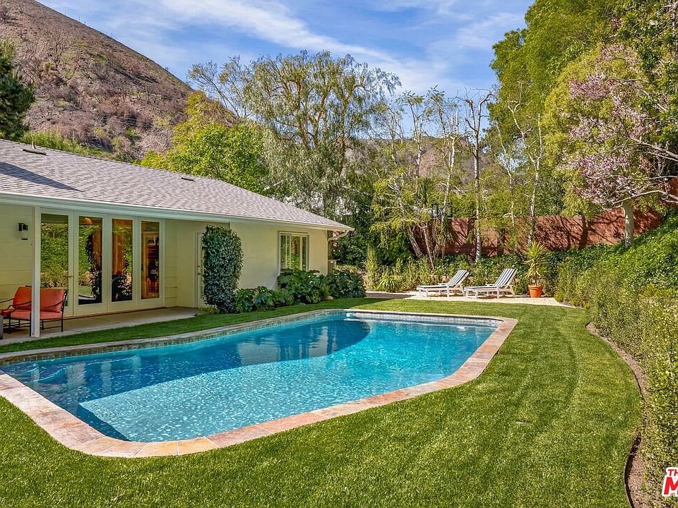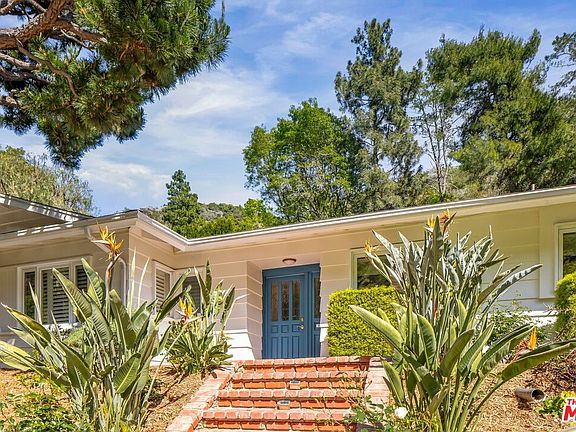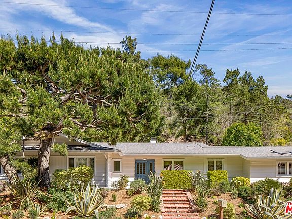 Tucked away in the serenity of Mandeville Canyon, this inviting ranch-style residence offers the perfect balance of nature, comfort, and California living. Surrounded by lush landscaping and mature trees, the private backyard unfolds into a tranquil retreat with a sparkling pool and canyon views an ideal setting for both relaxation and entertaining.Inside, the home's wide, single-level design creates seamless indoor-outdoor flow, with backyard access from the kitchen, dining room, living room, and primary suite. The kitchen is a true gathering space, complete with a Wolf stove, Bosch oven, generous counter space, an oversized island, and a cozy breakfast nook. Whether hosting a dinner party in the adjacent dining room or enjoying casual meals at the island, this space is designed for connection.Multiple living areas offer flexibility for every mood: curl up by the fire in the living room, unwind with a movie in the family room, or gather with friends for music and conversation. The primary suite serves as a peaceful sanctuary with its en-suite bath and expansive closets, while two additional bedrooms provide versatility for family, guests, or a home office.Step outside to experience the essence of canyon living a poolside oasis framed by greenery, where sunny afternoons and weekend barbecues await. With an oversized garage, ample parking, and just minutes to Brentwood's shops and dining, this property delivers both convenience and retreat. Parking for this home is plentiful, easily up to 6 cars, and located off the canyon road for easy access.