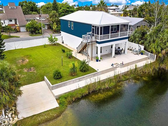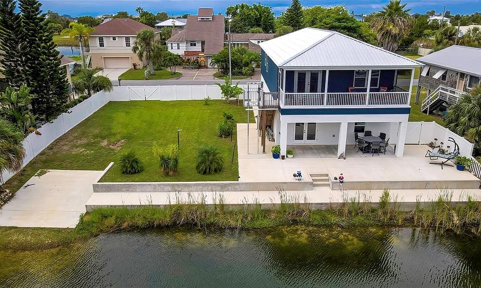 Beautiful elevated home built in 2023. Tranquil and private setting while being just minutes away from all of life’s conveniences, this waterfront home in Hernando Beach has it all. OVERSIZED FENCED DOUBLE LOT, 18 Ft. BOAT RAMP, 80 Ft CONCRETE SEAWALL, GULF ACCESS, METAL SOUND PROOFED ROOF WITH EXTRA INSULATION, NO HOA, NO SHORT-TERM RENTAL RESTRICTIONS. The owner built this home with meticulous attention to detail and the best quality of construction to produce a home with timeless quality. Very open floor plan, crown molding, oversized 6” baseboards, volume ceilings and abundant natural light with expansive panoramic outdoor views. French doors from the living area lead to the covered and screened balcony that spans the rear of the home and provides beautiful views of both sunrises and sunsets. OUTDOOR LIFT for seamless access to your stunning backyard from the main level and with the touch of a button bring groceries, luggage or heavy boxes from the car to the main level without ever having to lift them up a single step. GOURMET KITCHEN is a chef’s dream with top of the line upgrades- QUARTZ COUNTER TOPS, BACKSPLASH AND ISLAND, SHAKER CABINETS, under the counter MICROWAVE with pull out drawer, PROPANE RANGE, COUNTRY FARMHOUSE SINK, RECESSED LIGHTING, LG APPLIANCES, Refrigerator with Double Ice Maker. Beautiful PLANK CERAMIC FLOORS throughout the entire home. Energy Efficient Home with DOUBLE PANE WINDOWS, ATTIC WITH THERMAL BARRIER INSULATION reducing HVAC wear and tear and providing very LOW ENERGY BILLS. Custom Lighting and upgraded Fans on all rooms, the QUARTZ continues in all bathrooms. Spacious master bedroom with extended walk-in closet. The master bath is a true spa-like retreat with sitting area, custom dual-sink vanity with stunning, low-maintenance quartz countertops and spacious walk-in shower with Transom Window- showcasing custom-laid porcelain tile, grab bar and a removable handheld shower head. Entire ground floor is an oversized block garage (extended 5 feet) with room for 4 cars, a boat, toys and workshop. Walls are upgraded cement board and not drywall. Extra storage closet was added under the stairs. Behind the garage is an extended and covered lanai with a concrete slab that wraps around the side of the house and all the way to the seawall. If you are tired of the snow and cold winters do not miss this great opportunity and start enjoying the pleasures of the Florida Lifestyle. Conveniently located with easy access to beaches, natural parks, dining, entertainment and more! LENDER INCENTIVE/CONCESSION AVAILABLE FOR BUYERS. Call for details. VISIT OUR 3D TOUR.