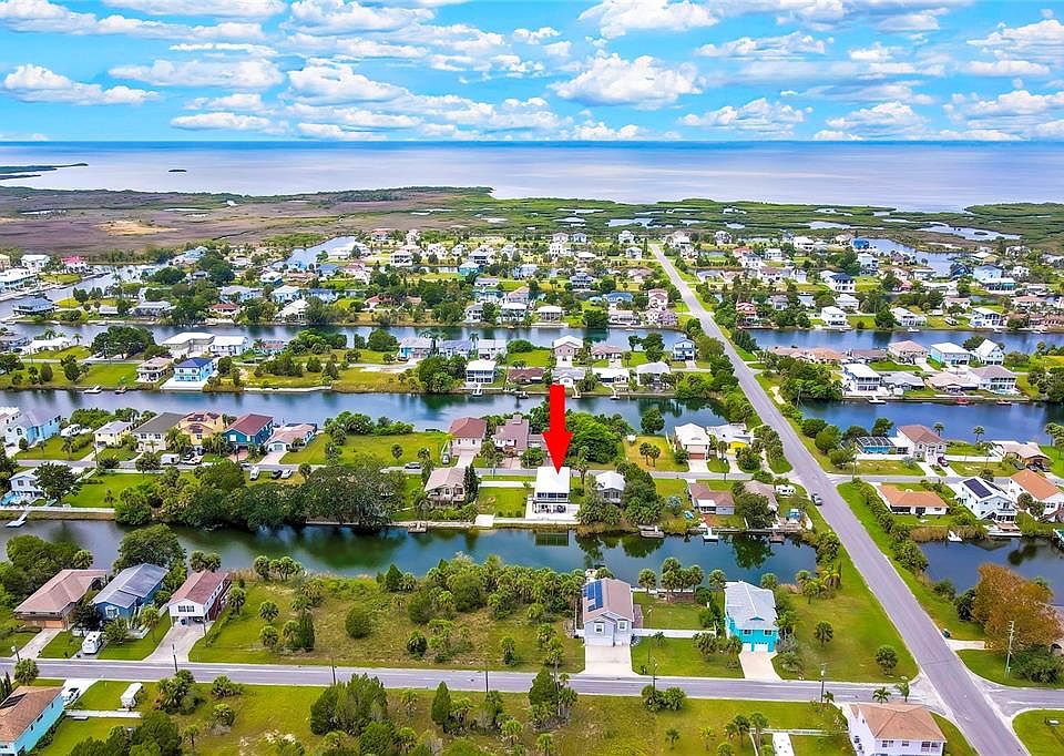 2023 Elevated Waterfront Home on Oversized Double Lot with Gulf Access. Move-in ready and built with exceptional quality, this Hernando Beach home offers privacy, space, and true coastal living. Enjoy an OVERSIZED FENCED DOUBLE LOT, 18-FT PRIVATE BOAT RAMP, 80-FT CONCRETE SEAWALL, and GULF ACCESS—with no HOA and no short-term rental restrictions. Inside, the open layout features volume ceilings, abundant natural light, plank ceramic floors, and a full-length screened balcony with beautiful sunrise and sunset views. The GOURMET KITCHEN includes QUARTZ COUNTERS AND ISLAND, SHAKER CABINETRY, LG APPLIANCES WITH DOUBLE ICE MAKER, PROPANE RANGE, FARMHOUSE SINK, AND UNDER-COUNTER MICROWAVE DRAWER. Energy-efficient upgrades include DOUBLE-PANE WINDOWS, a SOUND-INSULATED METAL ROOF, and an attic with THERMAL BARRIER INSULATION for very LOW ENERGY BILLS. The primary suite offers a large walk-in closet and spa-like bath with dual sinks and a custom-tiled walk-in shower. A convenient OUTDOOR LIFT connects the main level to the ground floor for easy access. The huge block-constructed garage fits 4 cars, a boat, toys and includes workshop space, upgraded cement-board walls, and a covered lanai that wraps to the seawall. A rare combination of quality, privacy, freedom, and true Gulf access—this is the one you’ve been waiting for. LENDER INCENTIVE/CONCESSION AVAILABLE FOR BUYERS. Call for details. VISIT OUR 3D TOUR.