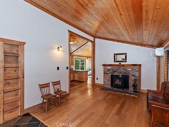 Centrally located Arrowbear, short distance to Snow Valley or ½ hour to Big Bear or down the hill to Highland / Redlands. This well-loved 3-bedroom, 1-bathroom home offers the perfect blend of comfort and convenience, with true single-level living with just three easy steps to the front door, level off-street parking (room for 3+ vehicles), one under carport. Inside, you'll find a warm, inviting interior featuring wood ceilings, a cozy wood-burning stove, newer vinyl windows, and mini-split systems in every room for efficient heating and cooling. The updated kitchen boasts stainless steel appliances (dishwasher brand new) and induction range is brand new (faster and safer than gas), newer cabinetry, and granite countertops—ideal for home cooks and entertainers alike. Fresh paint throughout gives this home a crisp, move-in ready feel. Sustainable living comes easy with solar panels (owned), a Tesla charger, a 200 AMP electrical panel and fully insulated (unlike many other mountain homes). Step outside to enjoy low-maintenance Trex decking, beautiful spring blooms and fruit trees across three included lots, and direct access to nearby trails—perfect for hike, bike or nature walks right from your home. Bonus features include a spacious unfinished basement with windows, offering great potential for a workshop, or extra storage. Whether you're looking for a full-time residence, a vacation getaway, or a rental opportunity, this home has everything you need in a peaceful, nature-filled setting. Come see the charm of mountain living with all the modern upgrades you want!