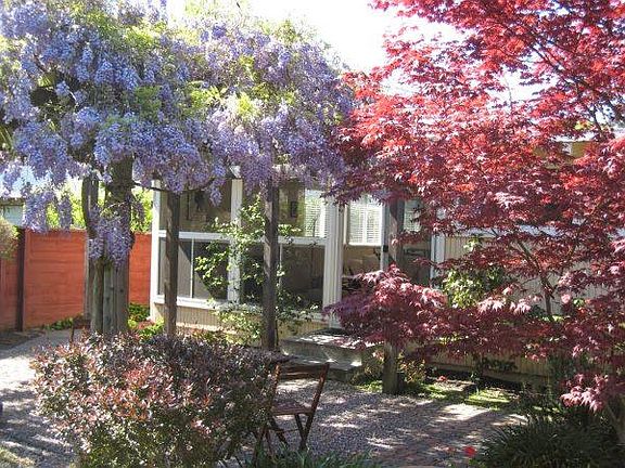 - Enjoy outdoor patio in your private beautiful backyard with a mature japanese maple tree, fruit trees and greeneries
