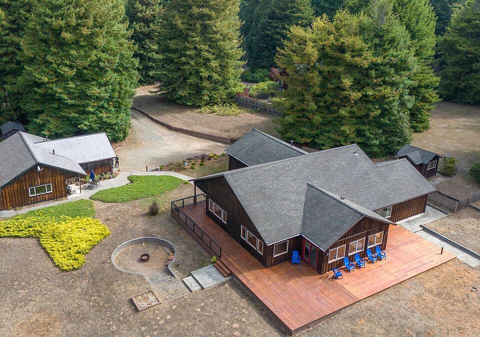 Owners have spared no detail in the completed construction of this well designed home. You will be delighted by the flow of the living room to dining room to kitchen. Passive solar heat is provided by a bank of windows into the south facing sunroom. The grand primary bedroom leads to an exquisite primary bath and adjacent walk-through closet. The pantry features custom oak cabinets milled by the seller, a respected building contractor. fast cable Internet makes working from home a breeze. Outside, the large fire pit area invites evening gatherings. Expensive new decks surround the homes on the south and west sides. The entire perimeter of this 2.24 acre property is fenced and includes a beautiful redwood Grove as well as sunny flat areas for your outdoor activities. three bedroom/2 bath 2500 square-foot house available September 1.