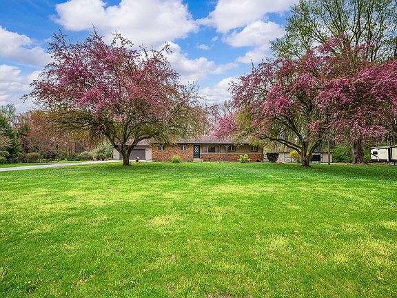 Welcome to this inviting brick ranch featuring 3 bedrooms and 3 full baths, set on 1.5 beautifully maintained acresI—just 20 minutes from the University of Notre Dame and South Bend amenities. This well-kept home offers a cozy living room with a fireplace and a spacious family room off the kitchen with a wood pellet stove—ideal for relaxing or entertaining. The kitchen includes ample cabinetry and flows easily into both living areas and the bright sunroom. Step outside to a peaceful backyard retreat with a patio and gazebo, perfect for morning coffee or evening gatherings. Each bedroom offers comfortable dimensions with convenient access to full bathroom. Additional highlights include main-level laundry, an attached garage, additional outbuilding and generous storage throughout.